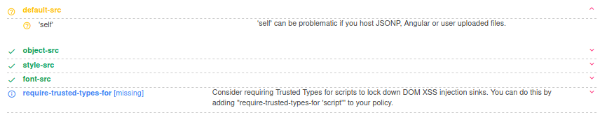 Using csp evaluator, we can see that we can use scripts from the same origin.