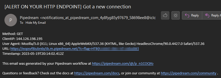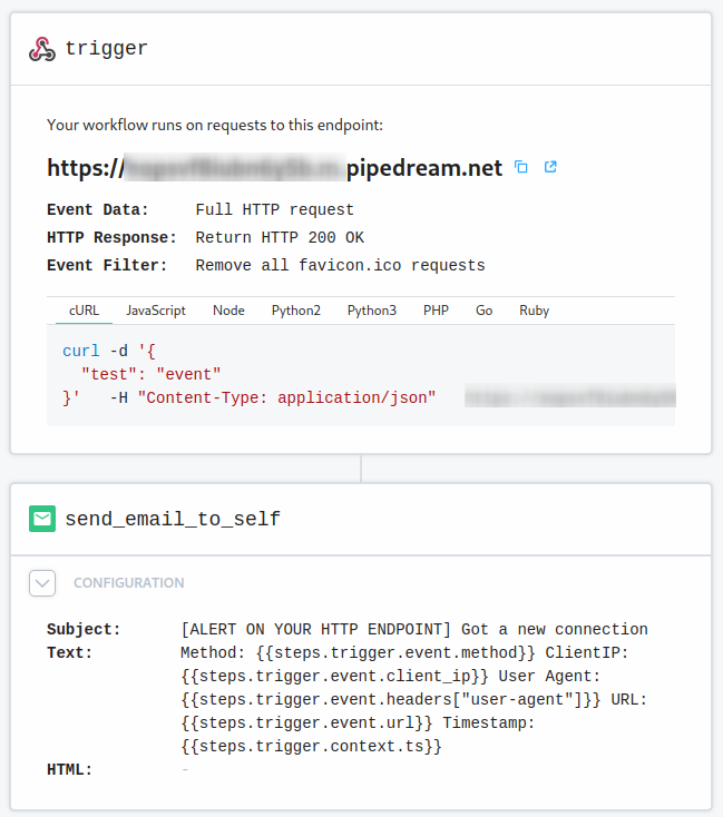 - (Optional) Add a second step New Emails, so you get notified if something interacts with your webhook